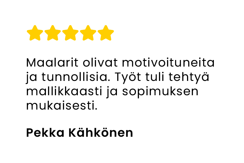 Jos luottaa omaan työhönsä, sille on helppoa antaa takuu. Annamme talon maalauksiin 2 vuoden takuun!